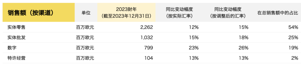 2023年期间实施的几项品牌举措,包括成功推出2023年秋冬系列,都推动了品牌发展势头延续到第四季度。在 BOSS 和 HUGO 两大品牌的市场相关性增强的基础上,这两个品牌继续保持两位数的增长轨迹,从而进一步扩大了全球市场份额。