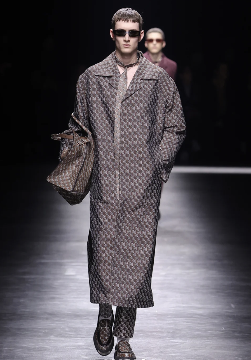 Fendi 2024秋冬男士系列由配饰及男装系列艺术总监 Silvia Venturini Fendi 打造,呈现往返于都市与乡野之间的“FENDI式生活”。