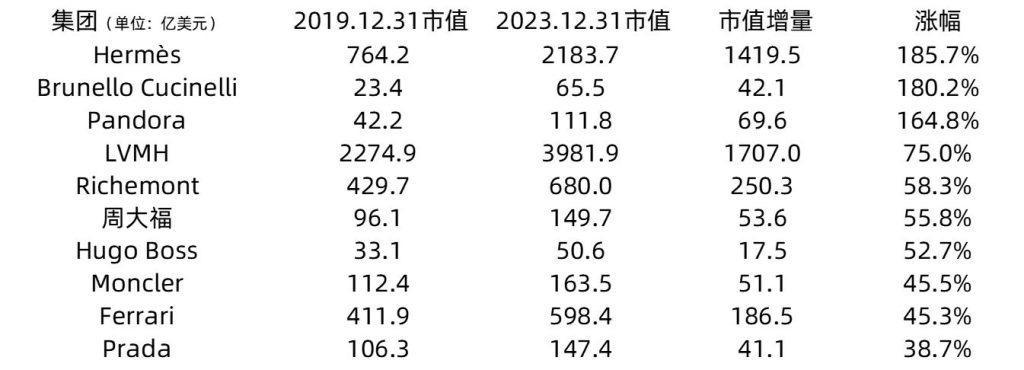 从市值变动看,谁是过去五年表现最好的奢侈品上市公司?
