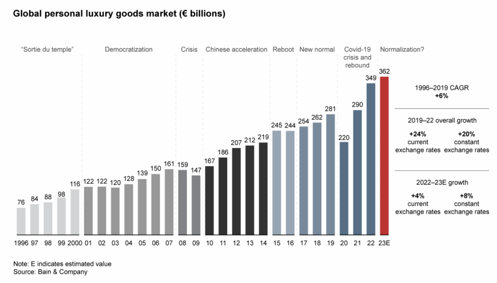 此外,成衣品类也呈积极趋势,在2023年约增长5%至6%。受到超高消费群体的青睐,随着对卓越性和永恒风格的需求不断增长,这些顶级消费者确保了超高端产品的强劲增长。此外,服装品类正在巩固后街头风潮,尤其是在男装领域。同时,时尚主导的产品也不如“更接近品牌传统和 DNA”的核心产品受欢迎。