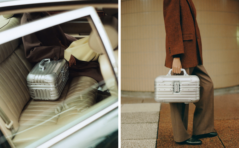 RIMOWA 推出全新铝镁合金化妆箱,它采用品牌经典的沟槽式设计,并以顶部开合设计方便拿取物品。同时化妆箱顶部有防水涂层拉链袋和扁平内袋,其中扁平内袋装有一面带灰色皮革镶边设计的铝镁合金化妆镜,而在化妆箱内部,第一层隔层采用了意大利皮革内衬,可容纳 5 瓶化妆品,另一隔层配备了定制可拆卸铝镁合金及有机玻璃托盘,可存放化妆品等小物件。