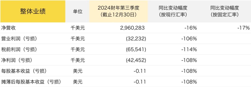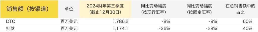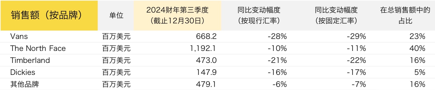 2024财年第三季度,VF 集团的其他关键财务、运营数据如下: