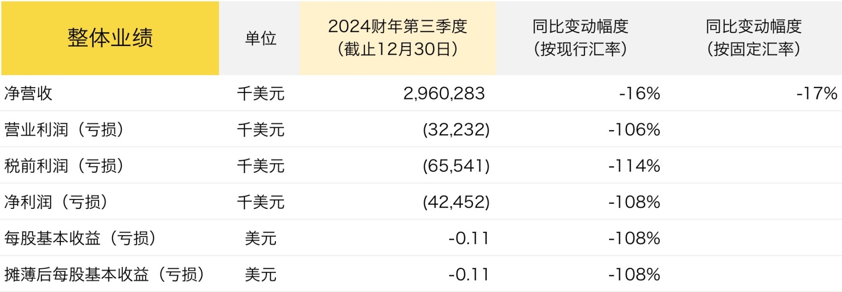 其中,大中华区同比增长5%(按不变美元计算增长7%)。