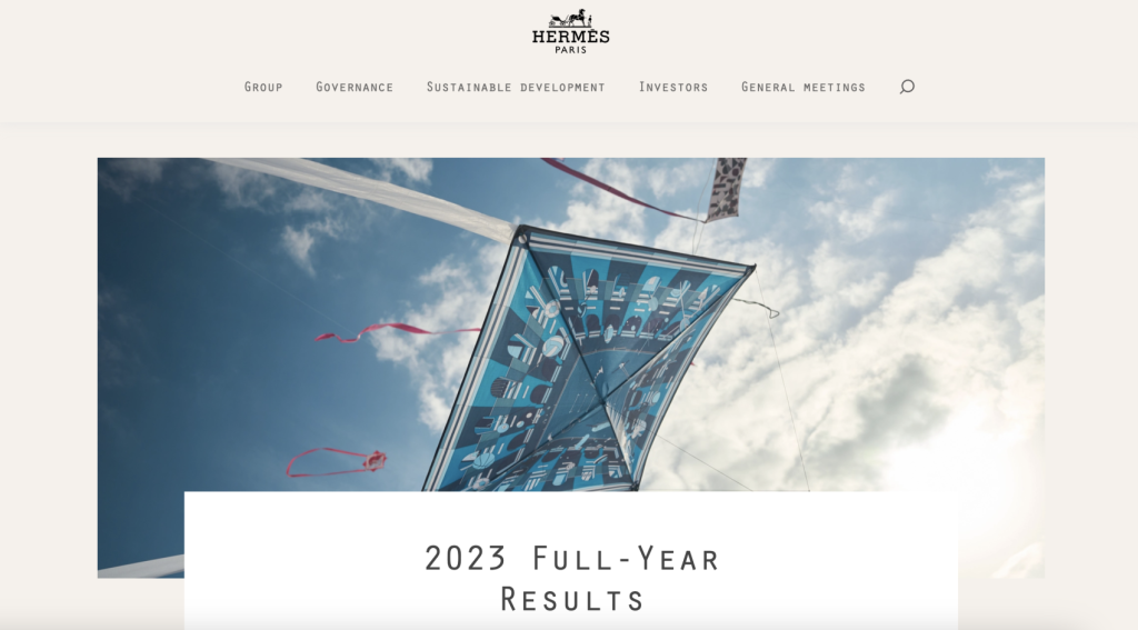 当地时间2月9日上午8时,法国奢侈品牌 Hermès(爱马仕)公布了截至2023年12月31日的2023财年第四季度及全年财务数据:全年营收为134亿欧元,按固定汇率计算增长21%,按当前汇率计算增长16%;经常性营业利润达57亿欧元,按固定汇率计同比增长20%;净利润达43亿欧元,按固定汇率计同比增长28%。