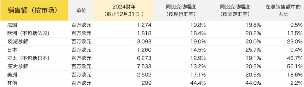 美国市场表现出色,尤其在今年下半年,全年销售额按固定汇率计同比增长21%。经过翻新和扩建后,爱马仕 芝加哥门店于10月底开幕,贝拉吉奥(Bellagio)门店于12月在拉斯维加斯重新开业。此前,爱马仕位于墨西哥湾的那不勒斯门店于2月开业,阿斯彭(Aspen)门店于6月开业,洛杉矶塔佩加(Topanga)门店于7月开业。此外,10月,爱马仕巡回展览 Hermès in the Making 在芝加哥获得了巨大成功。