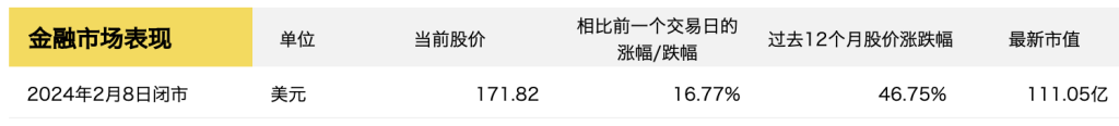 财报发布后,截至2月8日收盘,Ralph Lauren集团股价较上一交易日大涨16.77%,达到近9年来的最高点171.82美元/股。当前市值约为111.05亿美元。