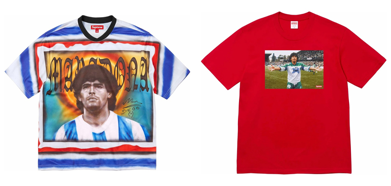 Supreme 这季还有致敬球王马拉多纳以及说唱组合 UGK。“艺术课堂”的部分,有用到美国艺术家 Margaret Keane 的“大眼娃娃”、摄影师 Birney Imes 在上世纪 80 年代所拍摄的一张旅馆中的影像、纽约东村“The Mosaic Man”Jim Power 的马赛克拼接作品、老搭档 Weirdo Dave 的拼贴画。