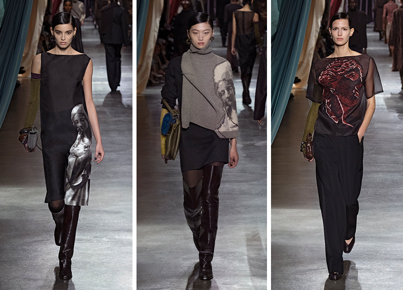 关于这个系列的创作灵感,Kim Jones 提到了 1984 年的伦敦,他列举了当时由这座城市掀起的浪潮——Blitz Kids、新浪漫乐派、工装的兴起、贵族风格、东方风格,这些关键词被调和于 Jones 为 FENDI 塑造的优雅风格之下。