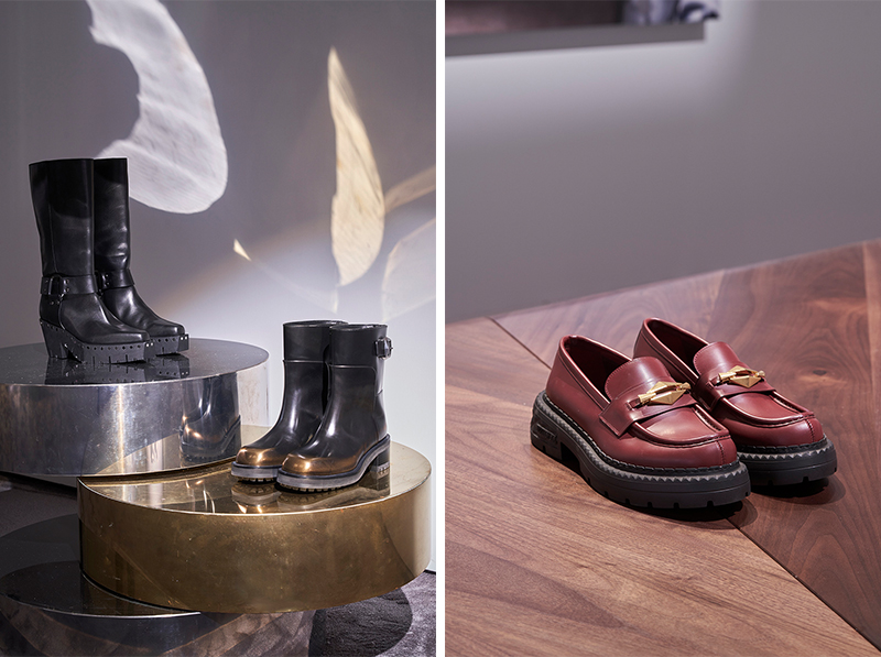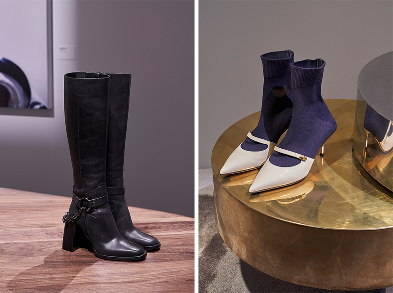 BROOKLYN 及踝与及膝机车靴是新一季的重点之一,另外还有 MARLOW DIAMOND 街头风乐福鞋、QUINN 中筒靴、小牛皮玛丽珍鞋和高科技针织袜靴组合的 CAROLYN 踝靴、鞋面加入系带设计的 SCARLETT 中跟鞋、网眼布加水晶装饰的 IXIA 高跟鞋等。