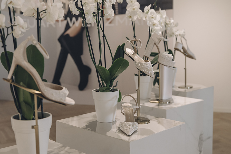 Stuart Weitzman 在米兰时装周发布了 2024 秋冬系列。系列以“Riding High”为主题,主打浓郁温暖的色调,包括咖啡色、榛子色、胡桃棕色和酒红色。材质部分,本季用到了鳄鱼压纹皮革、漆皮、初剪羊毛和水晶装饰丹宁等。