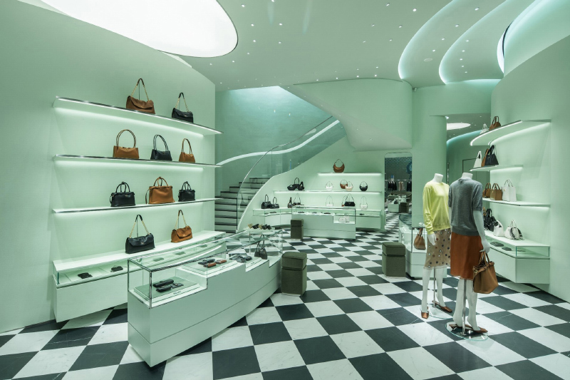 3 月 1 日,Prada 宣布位于 cdf 海口国际免税城的全新精品店正式开幕,店内带来了男女士成衣、皮具、鞋履和配饰系列产品。 店铺共两层,总面积近 580 平方米,店铺采用了弧形玻璃立面并搭配 Prada 经典三角形纹理,店内则融合了包括来源于 Prada 米兰伊曼纽尔二世长廊精品店(Galleria Vittorio Emanuele II)的黑白方格大理石地板等各种标志性元素。