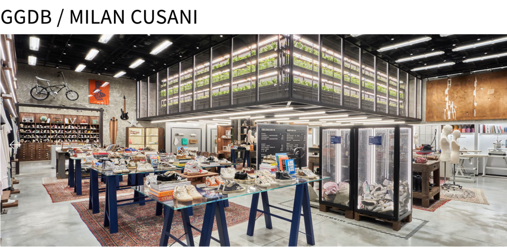 值得一提的是,新开门店中还包括2家“Forward 商店”(一种主要为消费者提供维修、翻新和回收等循环导向服务的创新零售概念),一家位于迈阿密(也是美国第二家Forward商店),另一家位于巴黎(欧洲第二家“Forward商店”)。 Golden Goose于2022年3月推出 Forward Agenda可持续发展计划,围绕创新、工艺、人文关怀、社区支持四大领域启动一系列项目。2022年7月,Golden Goose 在米兰开出首家“Forward商店”(下图)。