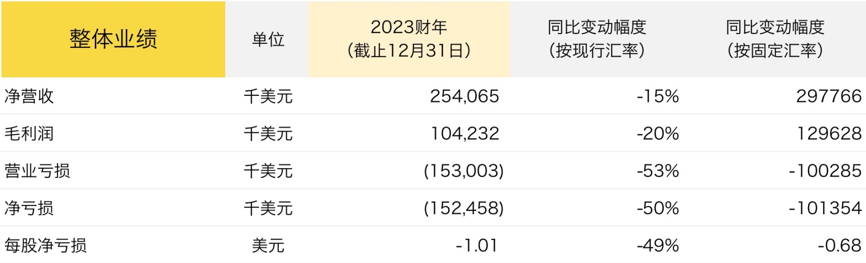 Allbirds 截止2023年12月31日的2023年关键财务数据如下: