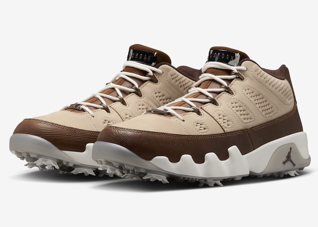 日前 Jordan Brand 发布全新 Air Jordan 9 GOLF“MASTERS”,它以即将开赛的高尔夫球美国大师赛为主题,不同深浅的棕色搭配不同纹路的皮革拼接构成鞋身,鞋舌处加入了金属铭牌强调主题,大底处则采用了更适合高尔夫球运动的设计。 它将在 4 月 正式发售。