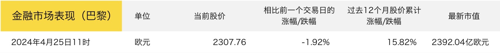 截止当地时间4月25日11时,Hermès 的股价较前日下滑1.92%至2307.76欧元每股 ,近12个月股价累计上涨15.82%,最新市值约为2392亿欧元。