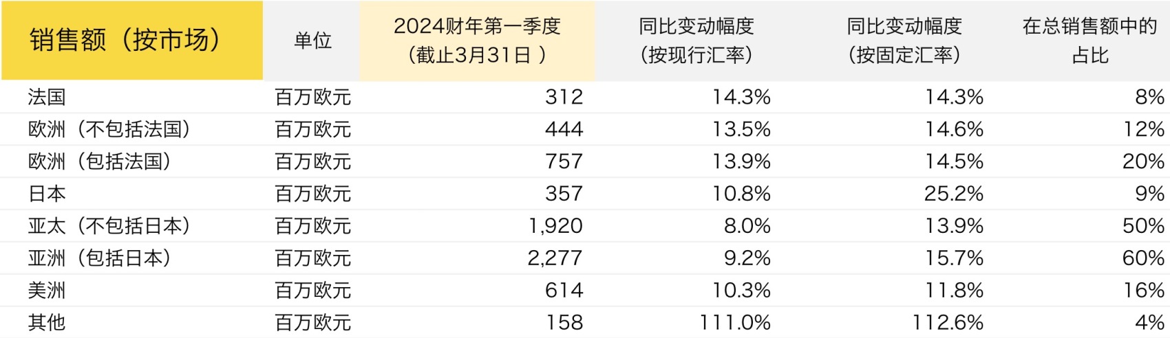 此外,尽管比较基数较高,欧洲(不包括法国)市场营收仍同比增长15%,法国市场营收也同比增长14%。报告期内,在法国,由 Hermès 赞助的第14届 Saut Hermès 年度超越障碍比赛成功在巴黎临时大皇宫举行。此外,品牌的皮革工匠、金匠和爱马仕工艺学校(L’École Hermès des savoir-faire)也在欧洲艺术手工艺日(European Artistic Crafts Days)期间在巴黎的Entrez en matières展览上分享了他们对手工和顶级原材料的热情。