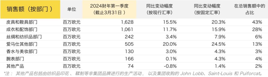 截至2024年3月底,按固定汇率计,Hermès 的所有部门均势头稳健并取得了良好的业绩。