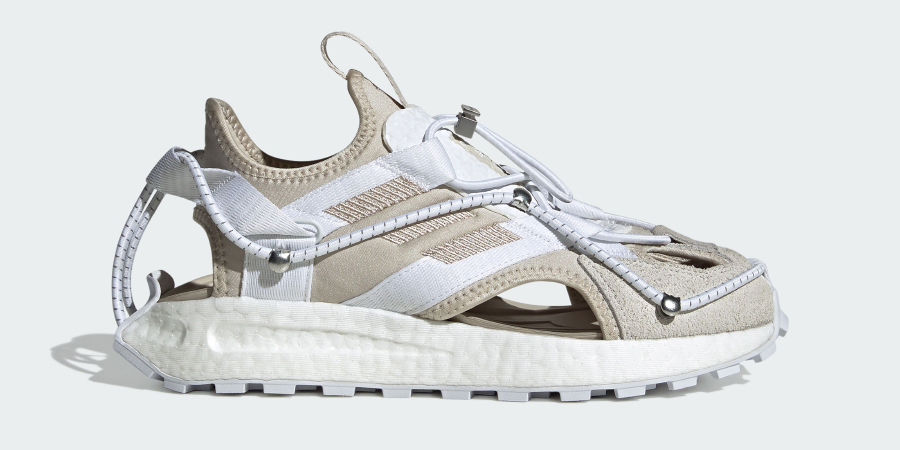 CG RETROPY SANDAL 则是解构了 RETROPY 的鞋面,将其改造成了凉鞋版本,搭配 BOOST 中底,也有一深一浅两个配色。