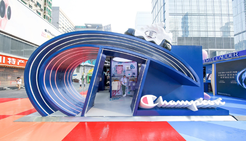 今年五一期间百丽在成都带来的街区快闪活动,里面也有 Champion 的部分