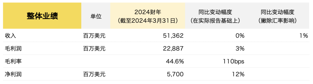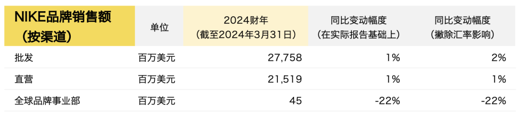 截至2024年3月31日,Nike 2024财年全年主要财务数据如下: