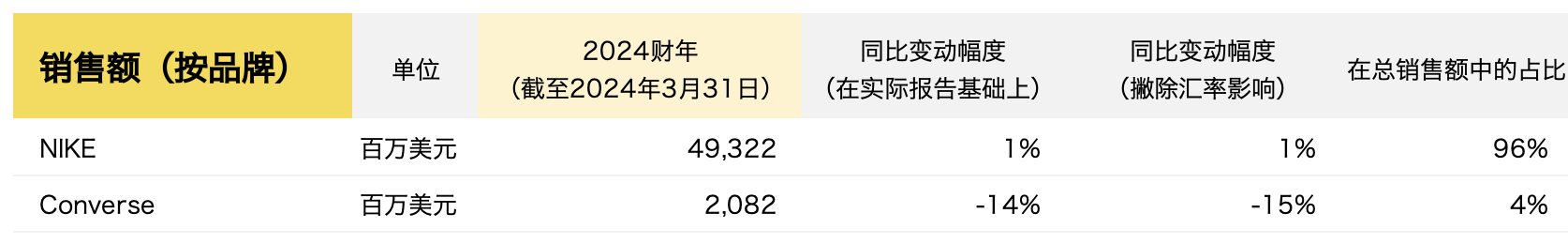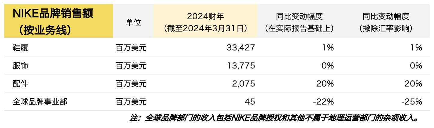 其中,Nike 品牌销售额相关财务数据如下: