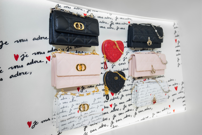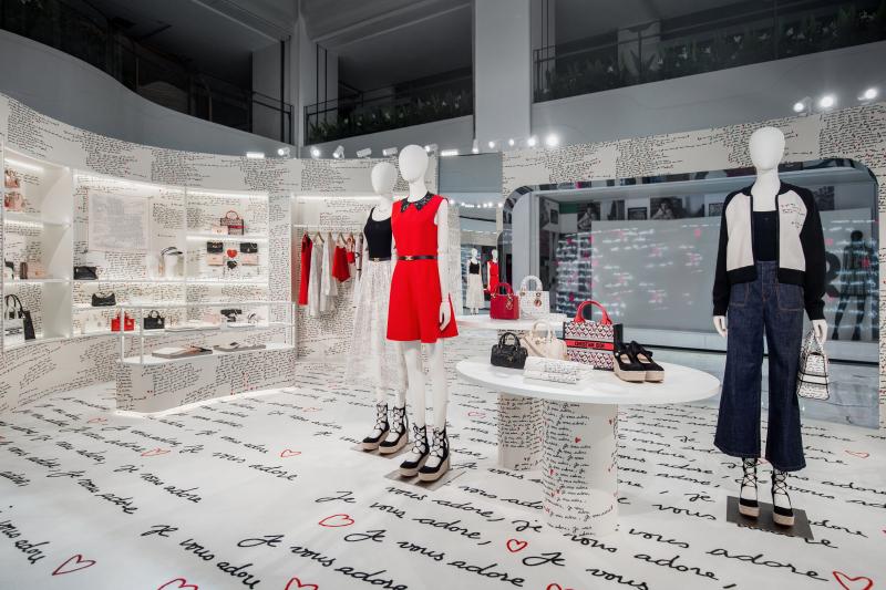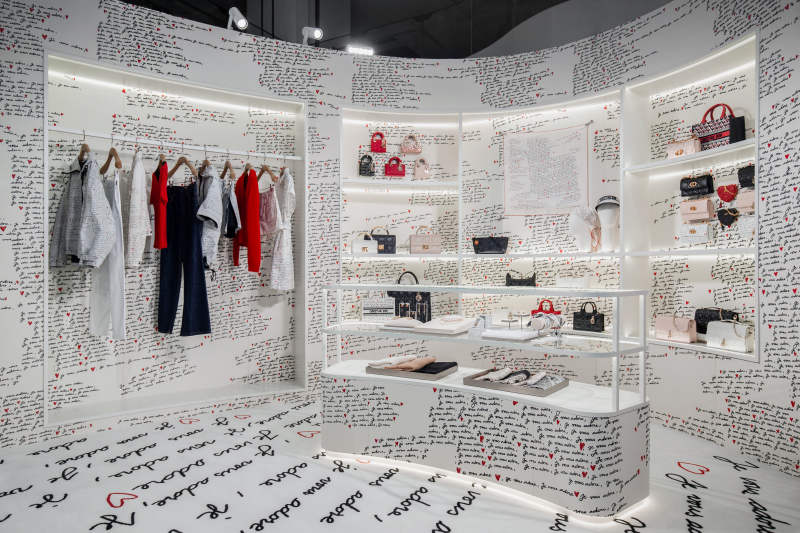 在北京SKP 1 层中庭,DIOR 从月初带来了 DIORAMOUR 限时精品店,这是为七夕节点专门打造的,店内带来了 DIORAMOUR 限时系列,系列单品设计以“JE VOUS ADORE”(我爱你)手绘字样为核心元素,同时搭配红色爱心图案,而这间快闪店也同样以这一元素包裹,营造出浪漫的氛围。