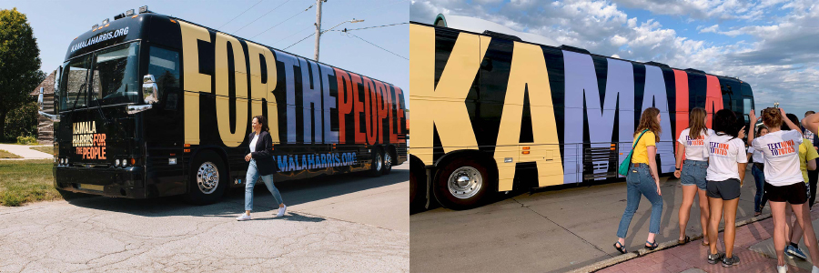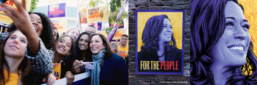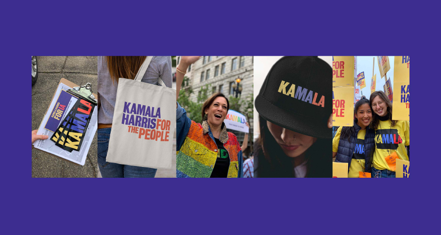 比如竞选标志。在北京时间 7 月 22 日凌晨现年 81 岁的美国总统拜登宣布放弃继续竞选后,原来的竞选伙伴、副总统卡玛拉·哈里斯(Kamala Harris)成为了潜在的总统候选人,而在短短“数小时内”,全新的竞选标志就已经设计出炉,并完成了全面替换。