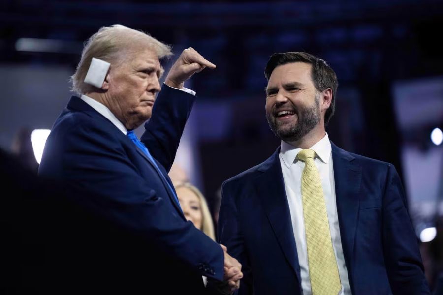 特朗普这边自然也是有竞选标志的。当地时间 7 月 15 日,生于 1984 年的 J·D·万斯(J. D. Vance)确认获得共和党副总统候选人提名,他也成为特朗普的副手,并开始参与到竞选当中。随后共和党完成了标志更新,带来了“特朗普-万斯”组合标志。