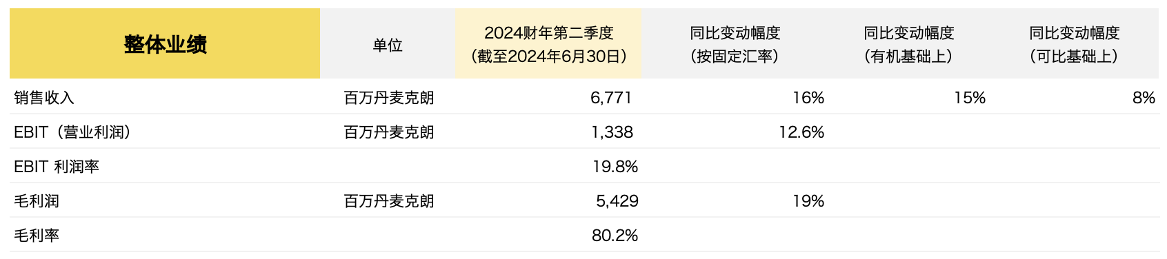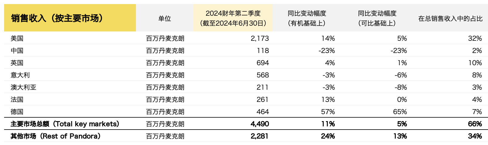 截至6月30日,Pandora 2024财年第二季度关键财务数据如下: