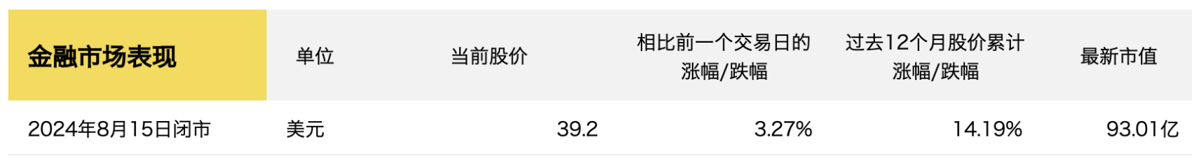 财报发布后,截至8月15日收盘,Tapestry集团股价较上一交易日增长3.27%至39.2美元/股,当前市值约为93亿美元。