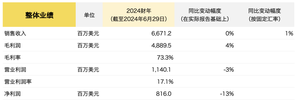 集团在2024财年继续推进其战略重点。尽管全球经济和消费者环境复杂,但集团在这一年里实现了营收增长(按固定汇率计算)、显著的毛利率扩张、调整后每股收益两位数增长和强劲的现金流。