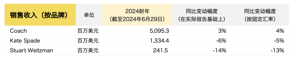 2024财年销售收入按固定汇率计算增长1%,其中Coach销售额突破50亿美元,创历史新高