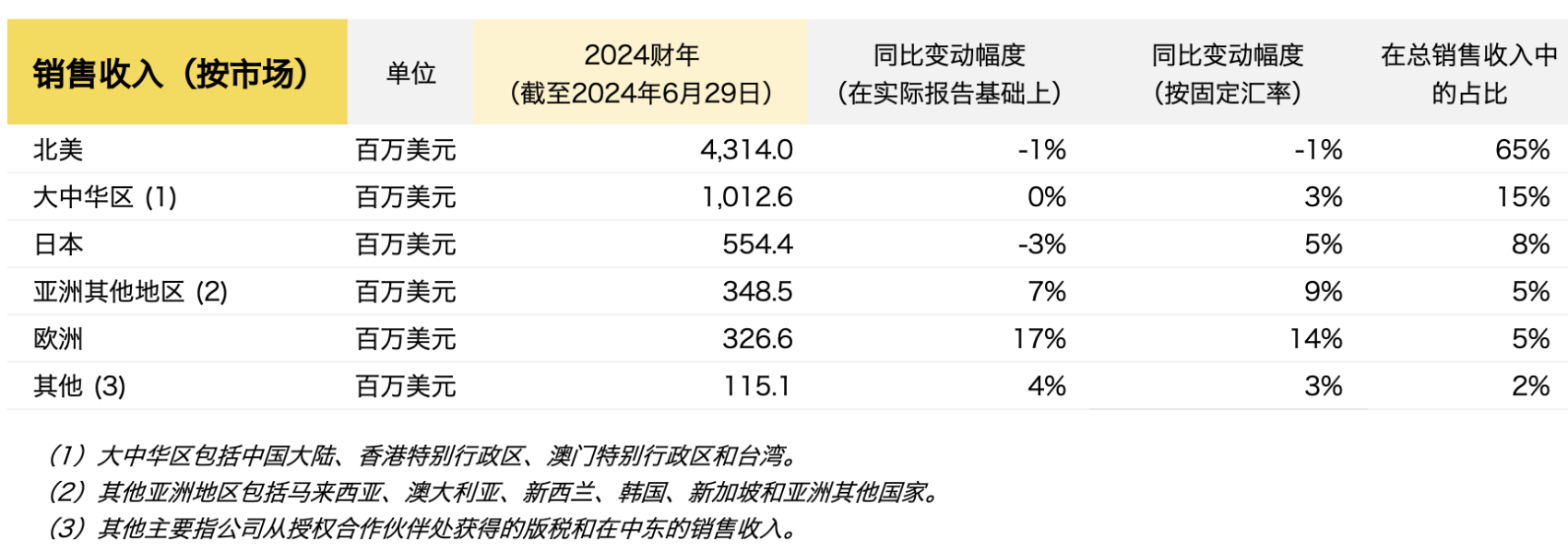 在24财年,按固定汇率计算,国际市场营收增长6%,欧洲 (+14%)、亚洲其他地区(+9%)、日本(+5%)和大中华区(+3%)的营收都实现了同比增长