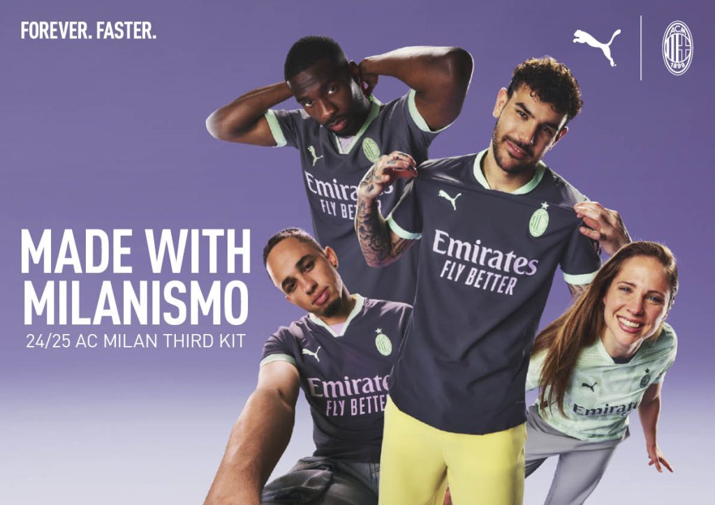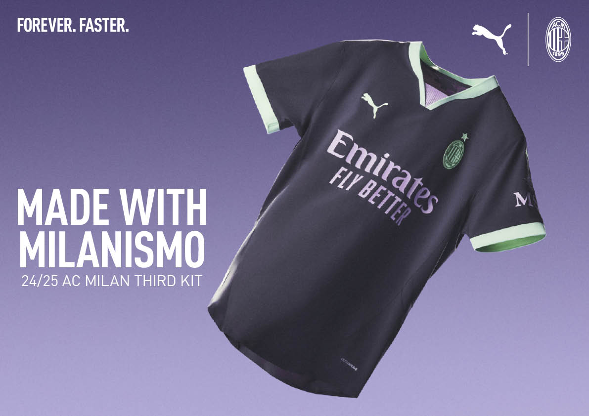 PUMA 正式发布 2024/25 赛季 AC 米兰第二客场球衣,球衣以中性色为主色调,队徽、衣领和袖口处以淡绿色点缀,同时也融合了淡粉色赞助商字体设计。此外后侧衣领下方印有“125”周年字样,这体现了俱乐部的悠久历史。