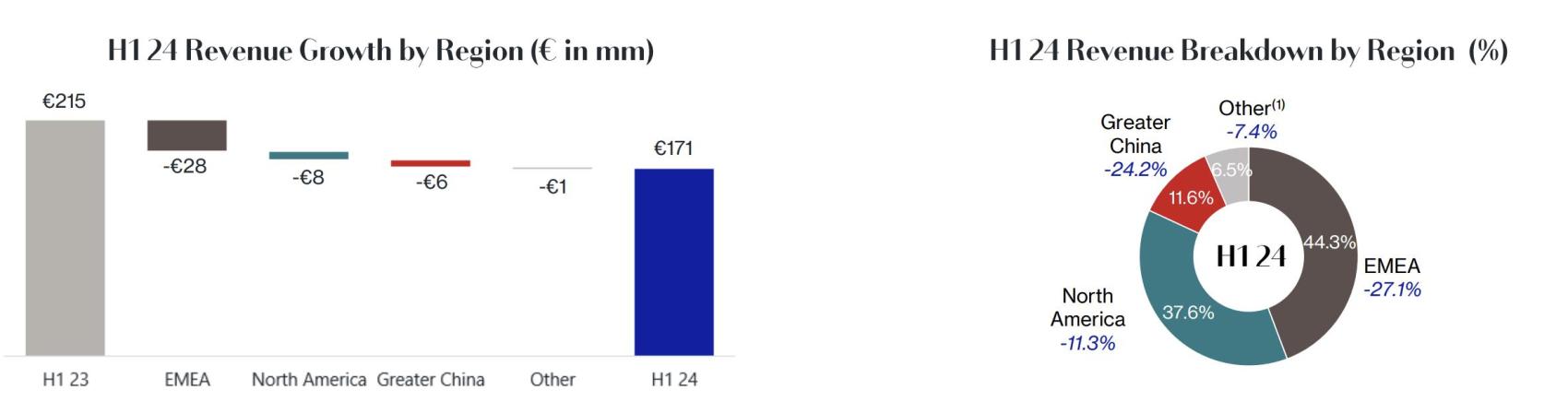 集团表示,全球奢侈品市场疲软,EMEA(欧洲、中东和非洲)地区和大中华区的营收受到影响显著,Lanvin 品牌在除大中华区外的亚太地区取得9%的强劲增长。