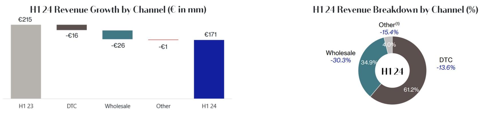 Lanvin:营收同比下降15%至4827 万欧元,主要由于全球奢侈品消费疲软以及批发市场放缓带来的挑战。