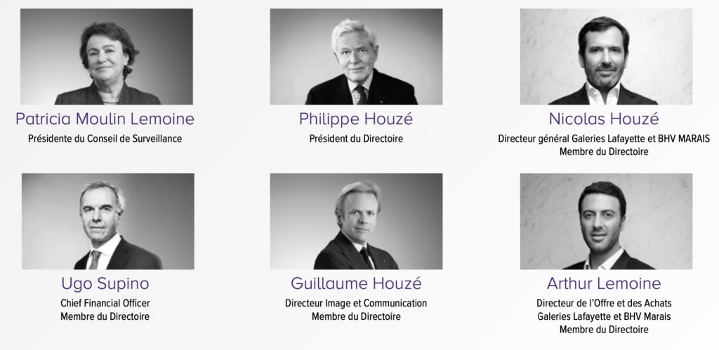 此后,Ginette Moulin 的女婿 Philippe Houzé 将接任 Motier Holding 董事长一职。此外,Nicolas Houzé(Philippe Houzé 的长子)、Guillaume Houzé(Nicolas Houzé 的弟弟)和 Arthur Lemoine(Nicolas Houzé 的表弟)被任命为公司副总裁,Augustin Belloy 被任命为秘书长。
