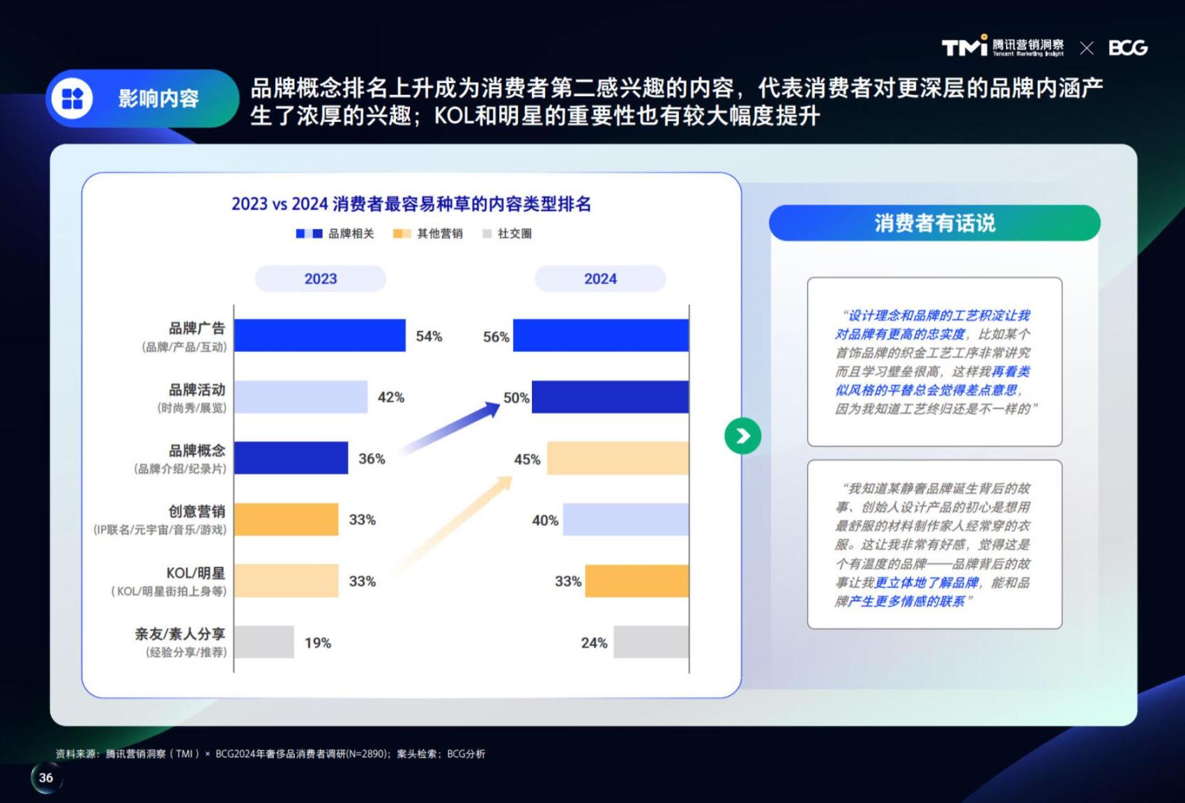 在激发种草兴趣上,消费者对品牌深度内容的关注从36%增长到50%。