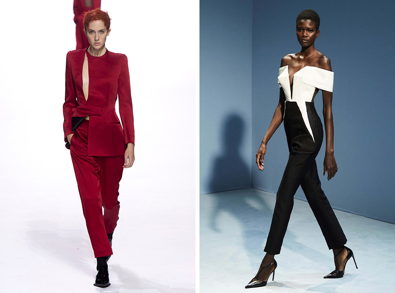 左边来自 Haider Ackermann 2018 春夏,右边来自 Haider Ackermann 为 Jean Paul Gaultier 设计的 2023 春夏高定