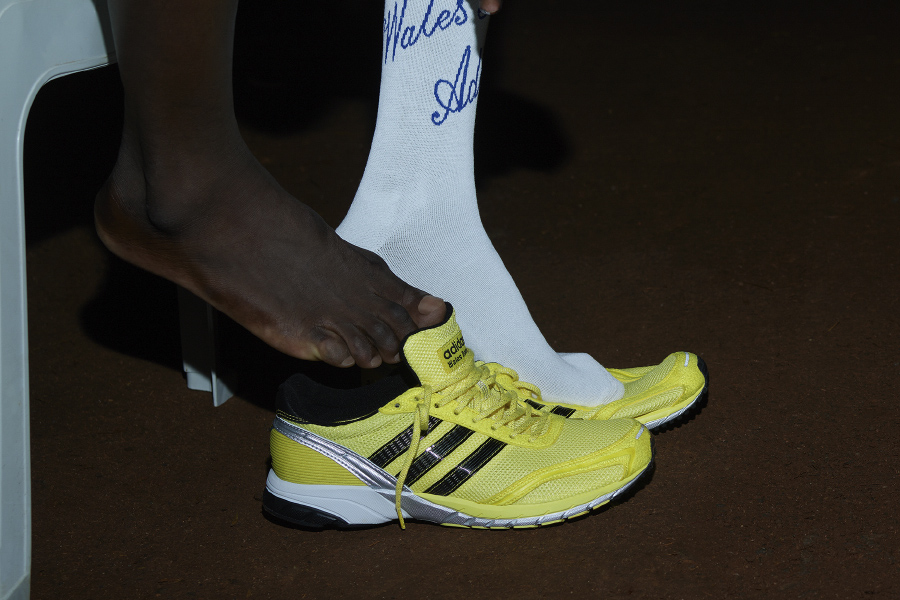 adidas 和 Wales Bonner 的全新合作单品 WB Adios Neftenga 正式上市。它最早是亮相于 Wales Bonner 的 2024 春夏“马拉松”主题时装秀。联名款保留了经典马拉松跑鞋的简约复古外观,以亮眼的黄色为主调,鞋面主打网眼材质,并拼接有流线感的绒面革以及银色皮革,还是有非常多耐看的细节,包括在侧面的经典三道杠上也加入了装饰。