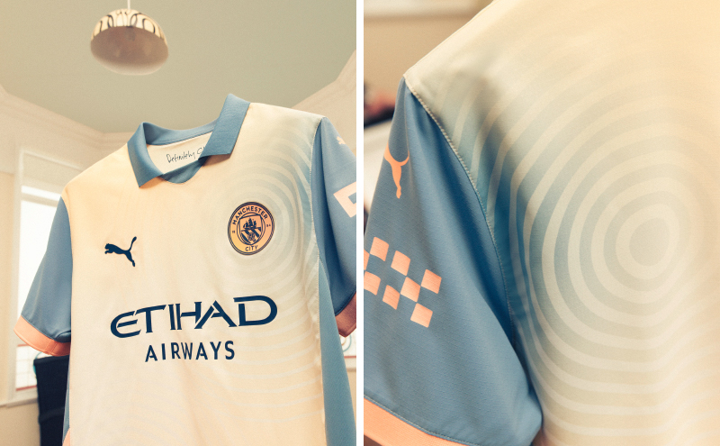 就像之前曝光的一样,这款新球衣在设计上致敬了 Oasis 的首张专辑《Definitely Maybe》,并作为了今年《Definitely Maybe》发行 30 周年的纪念。