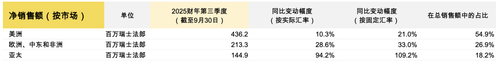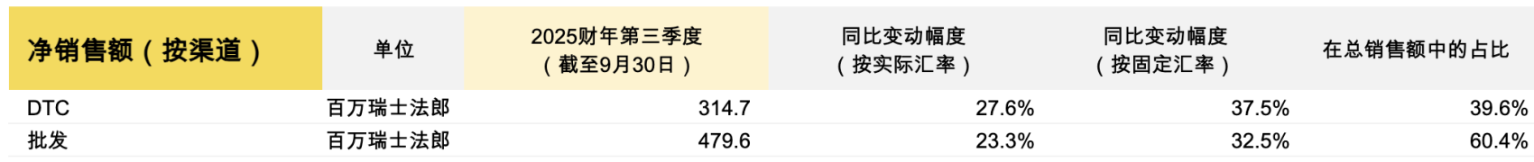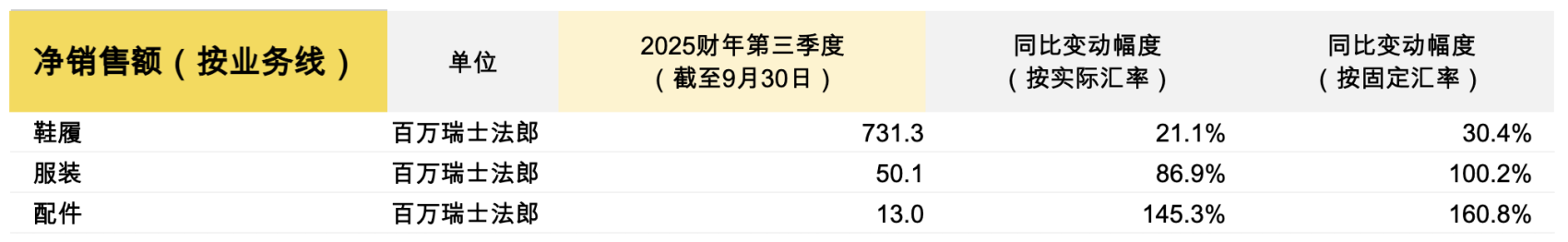 瑞士运动鞋制造商 On Holding AG(昂跑)公布截至2025年9月30日的2025财年第三季度关键数据:得益于DTC以及批发渠道的强劲表现,净销售额同比增长24.9%至7.944亿瑞士法郎(按固定汇率:+34.5%);净利润同比大增289.8%至1.189亿瑞士法郎,双双创下历史新高。