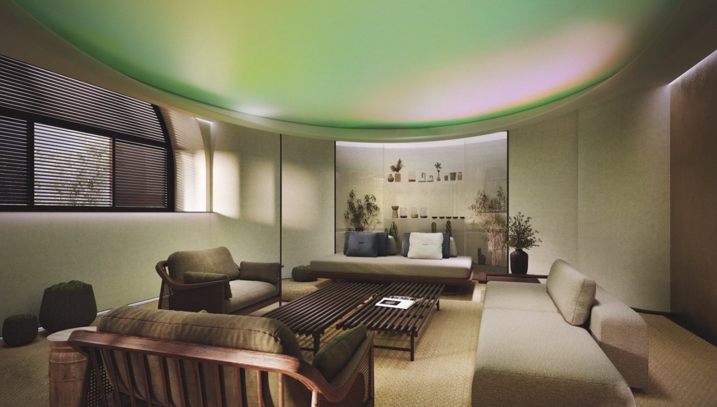 悉尼精品店打破传统零售边界,将生活方式与尊享体验置于核心。店内打造多个互联互通的空间,旨在促进人与人之间的深度交流,培育真挚人际关系。其中,冥想室作为感官与内心的栖息之所,选用珍稀材质,以自然温暖的肌理,与葱茏绿意、柔和光影共同织就宁静氛围,亦呼应澳大利亚崇尚身心平衡、亲近自然的生活哲学。运动酒吧则化身休闲社交枢纽,复刻澳大利亚酒吧特有的热忱欢聚氛围。整间精品店以温暖有机的设计格调,完美诠释 RICHARD MILLE 所倡导的细腻感知与人文关怀。