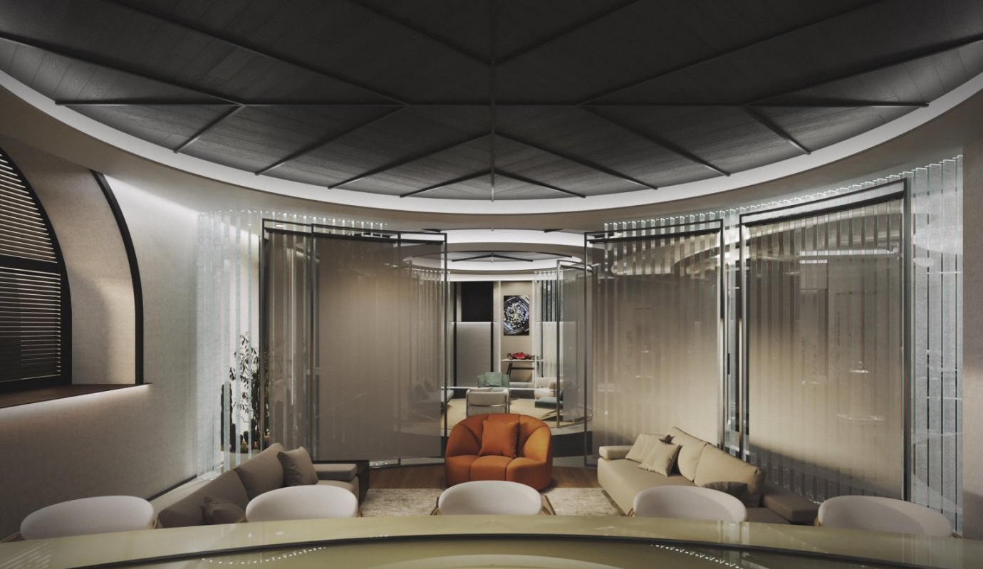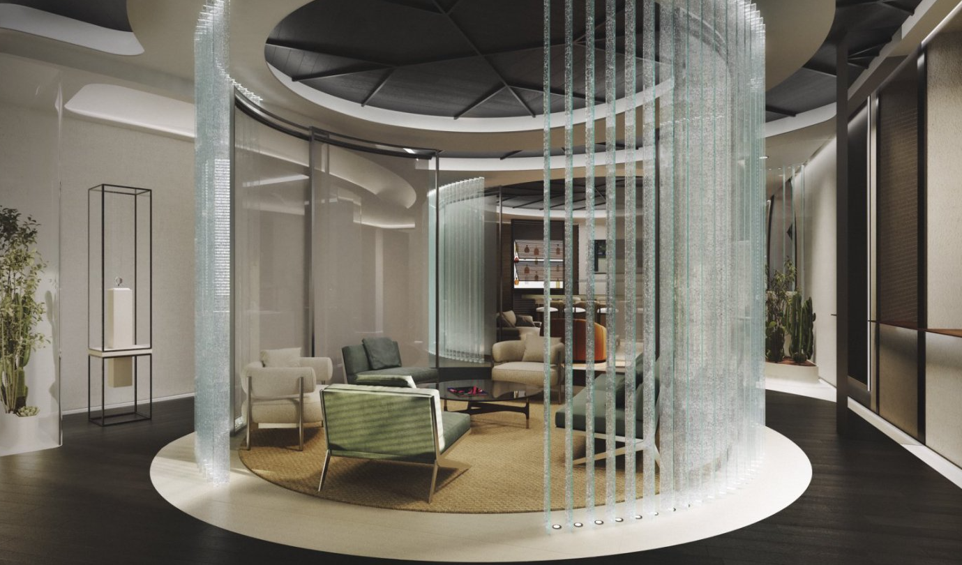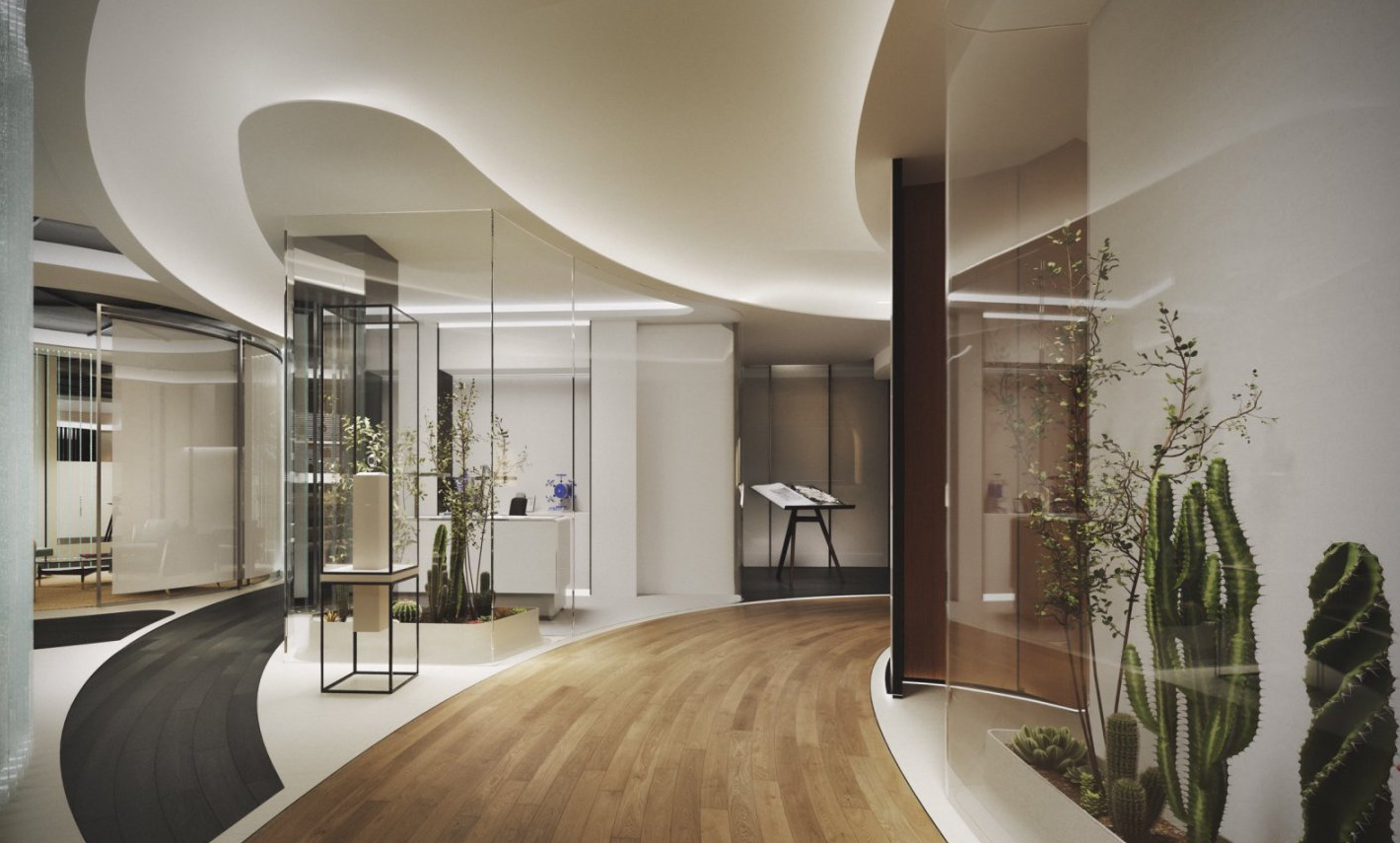 精品店总面积达 270 平方米,空间开阔通透,兼具亲和力与雅致感,让访客可随心漫步、自在探索。店内摒弃传统墙体隔断,转而融入品牌标志性的“碎玻璃”鳍片元素–这一贯穿全球所有 RICHARD MILLE 精品店的建筑元素,既巧妙划分功能分区,又维系视觉通透感,最终构建出兼具空间流动性与私密氛围的通透格局。