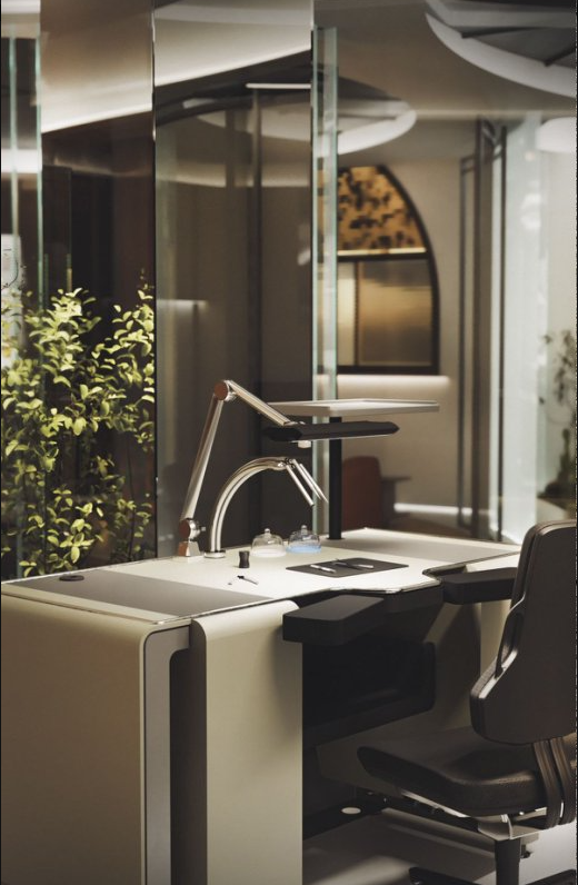 位于空间核心的制表师工作坊,以透明之姿礼赞时计艺术。作为整座精品店的灵魂所在,它向访客展示品牌对技术极致的追求,亦呼应 RICHARDMILLE 将精准与性能升华为艺术的品牌哲学。