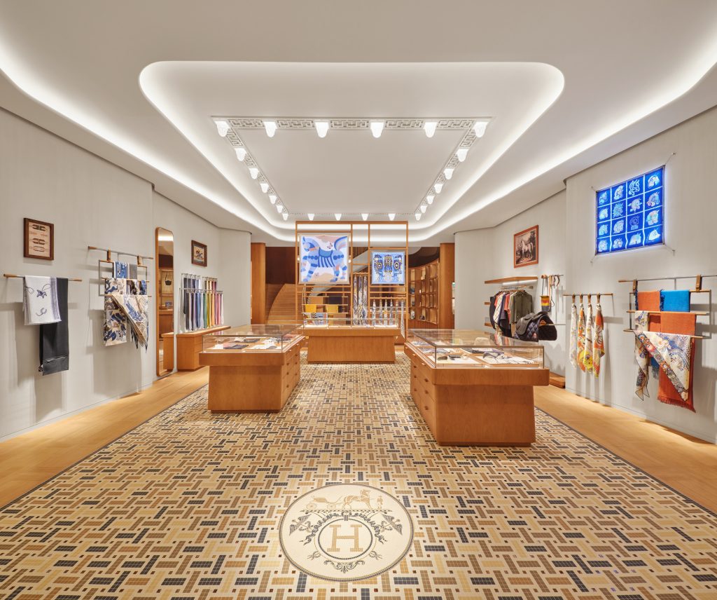 爱马仕介绍,其每一家门店内都会有标志性的马赛克和灯具设计,以致敬品牌历史上的第一家门店。