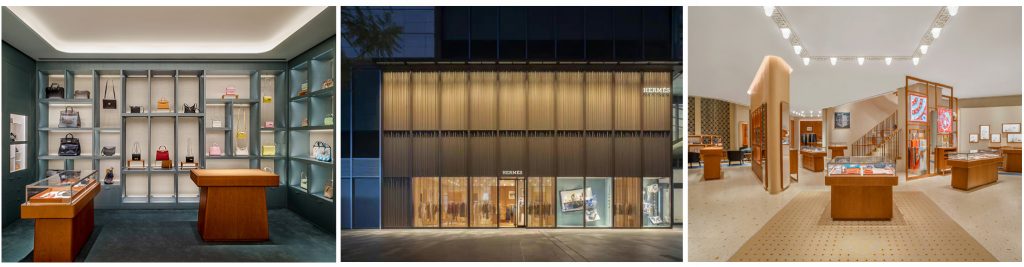 上图从左到右:爱马仕苏州美罗店;爱马仕厦门万象城店;爱马仕武汉恒隆广场店