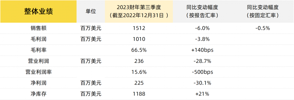 在发布2023财年第二季度财报时,集团曾预计第三季度的销售额约为15.3亿美元,营业利润率约为20.5%。