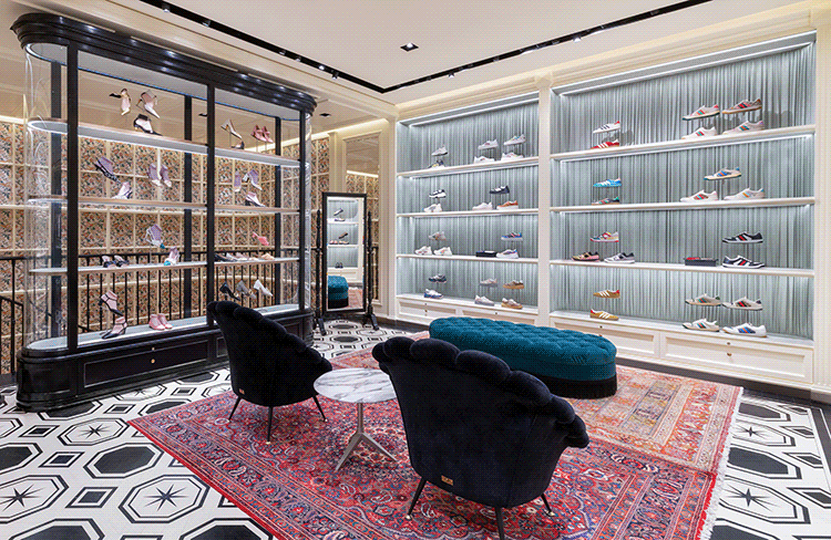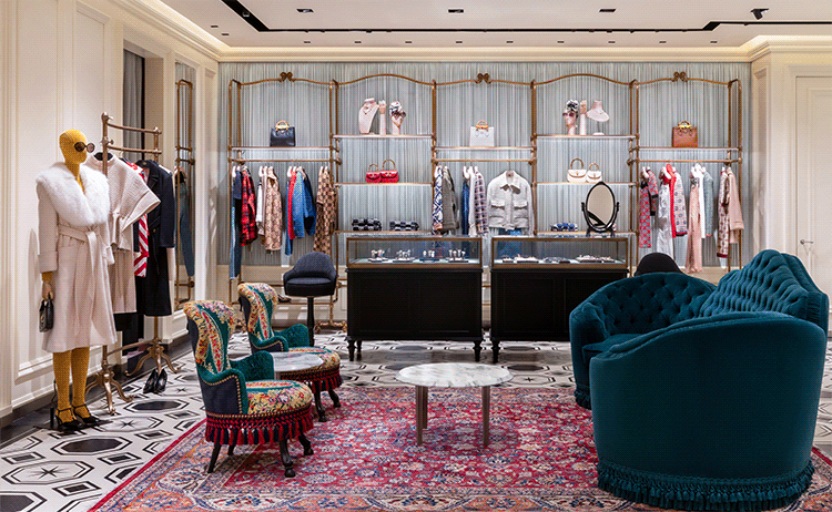 在王府中環,GUCCI 全新精品店最近刚焕新亮相。双层空间的店铺面积超过 550 平方米,室内设计融合了复古与现代风,黑白色几何组合图形的木地板、墨绿色天鹅绒沙发、楼梯间墙面的中国传统云锦面料纹理等都让人印象深刻。 目前店内带来了品牌男女装、包袋、香氛等系列。 GUCCI 北京王府中環精品店 地点:东城区王府井大街 269 号王府中環东座 L1-22299
