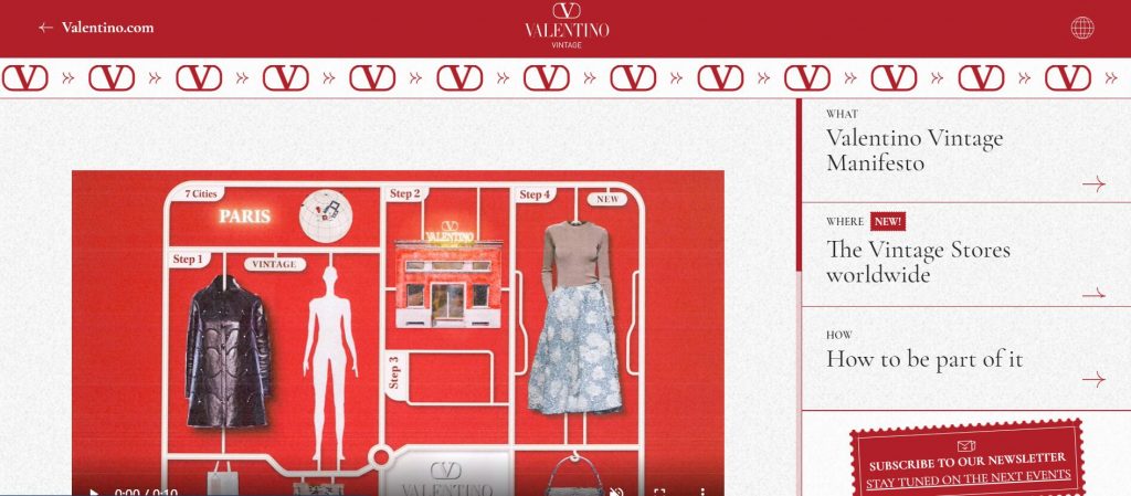 此前的2022年10月,Valentino 初次通过其网站上的专门页面推出了 Valentino Vintage 项目,公布了米兰、东京、纽约和洛杉矶四个城市参与该项目的中古时装店,并解释了客户需要遵循的转售程序。客户可以通过该项目转售他们不再使用的 Valentino 服装和配饰。